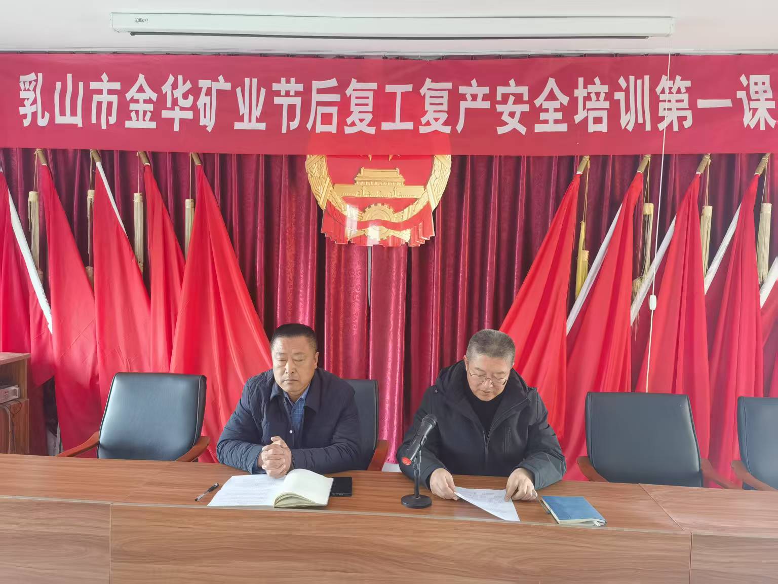 乳山市金华矿业节后复工复产安全培训第一课,202525日在金华矿业会议室召开,有应急局领导、全体干部职工。